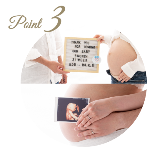 幸せな瞬間の記録は家族の大切な思い出として、妊娠というご自身の歴史を美しい作品として、これからにぜひ残してください。
